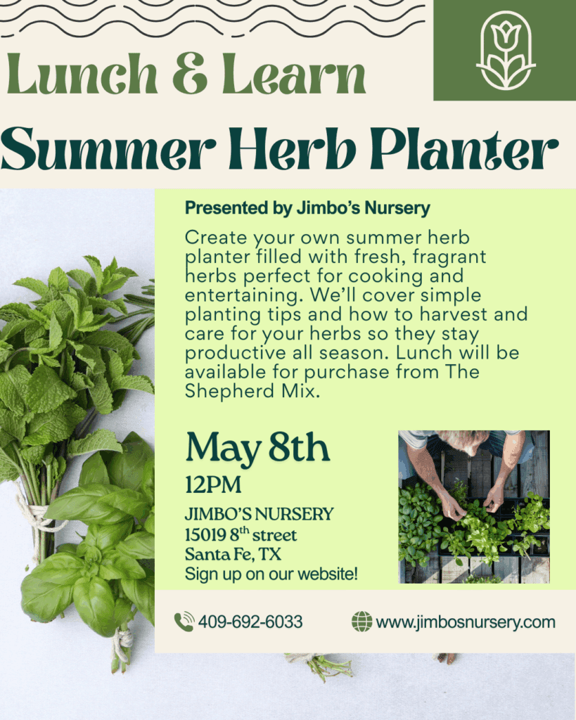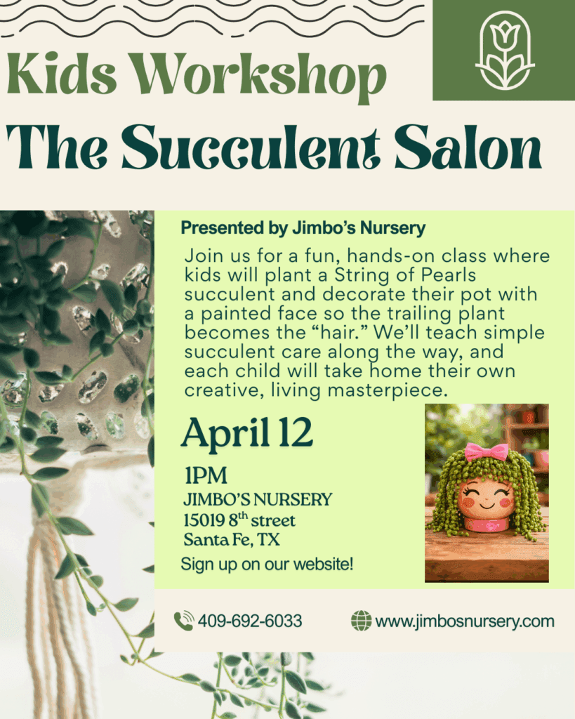 Jimbo’s hosts fun, hands-on workshops and classes for all ages and skill levels. Whether you’re a beginner or a plant pro, our upcoming events are perfect for garden clubs, birthdays, or a creative night out. Lets get growing!